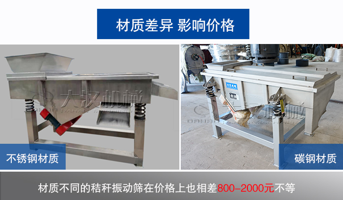 不鏽鋼材質的直線妖精视频在哪个网址播放更適合食品、醫藥篩分,對於秸稈篩分衛生環境要求較高的企業也可以使用的不鏽鋼直線妖精视频在哪个网址播放,對於衛生環境要求不高的企業碳鋼材質的直線妖精视频在哪个网址播放就可以滿足您的要求,價格上也會比不鏽鋼的便宜不少。