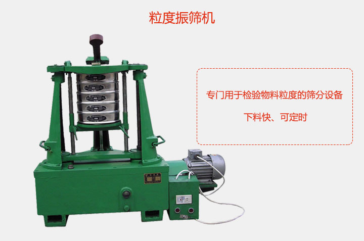 粒度振篩機電機通過同步帶,帶動齒輪變速後使主軸轉動,主軸帶動偏心輪使滑板帶動試驗篩左右搖動,同時帶動頂杆齒輪轉動,頂擊拍錘,拍擊試驗篩,使試驗篩、分樣篩中的物料篩分。