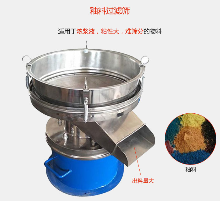 釉料過濾篩適用於:食品,陶瓷,醫藥,化工,油漆,冶金等行業廣泛應用。