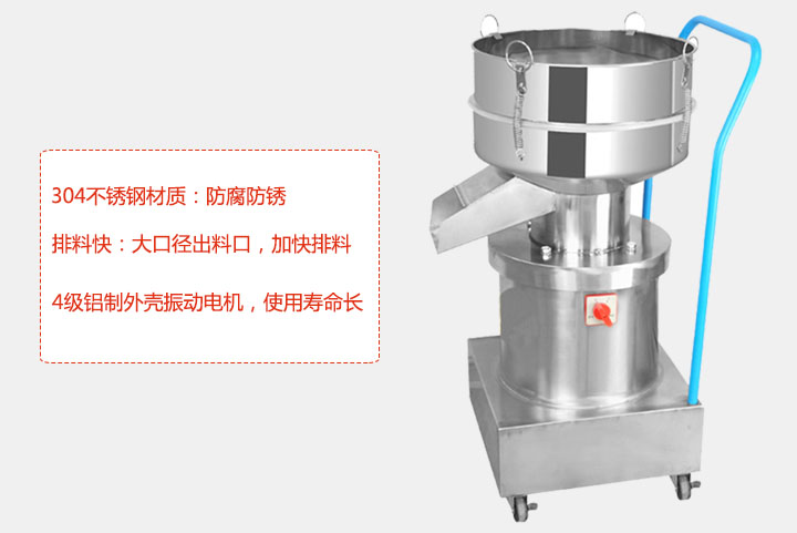 3,無上該設計,易於觀察篩麵,出料口可以360度自由旋轉,篩網更換,清理方便。